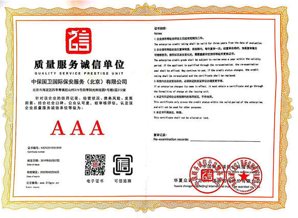 中保國衛(wèi)國際保安服務(wù)(北京)有限公司,屬中保國衛(wèi)集團(tuán)旗下子公司。能全方位的為大型客戶提供優(yōu)質(zhì)的安保、押運服務(wù),是集人防和技防于一體的新型正規(guī)化綜合安保押運服務(wù)企業(yè),提供人防、物防、技防、聯(lián)網(wǎng)報*、非武裝押運等安防相關(guān)的一站式服務(wù)。